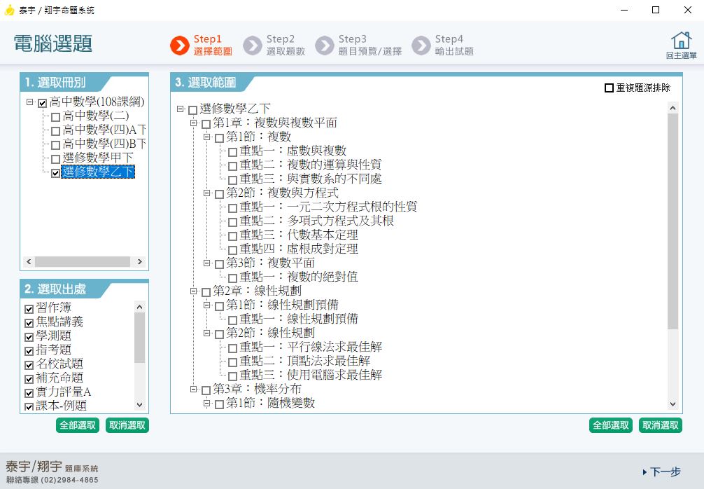 111學年下學期 高中命題光碟 泰宇版 數學科(二、四A、四B、選修甲下、選修乙下)(108課綱) 題庫光碟