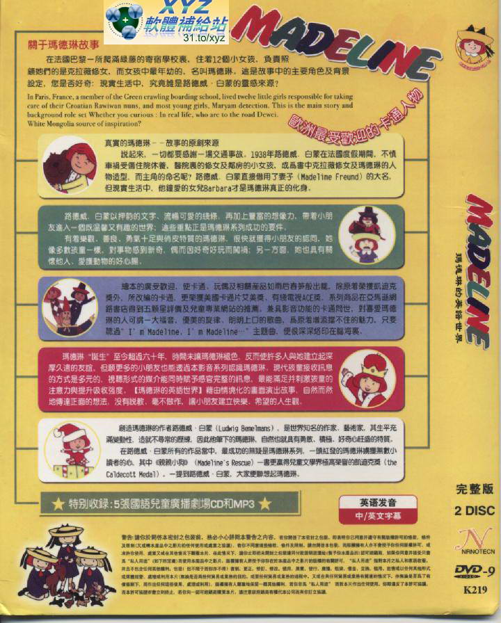• 瑪德琳 Madeline 1-3單元 英語發音 繁體中文/英文語言字幕版(DVD版)(卡通)(適用任何家用DVD播放機)
