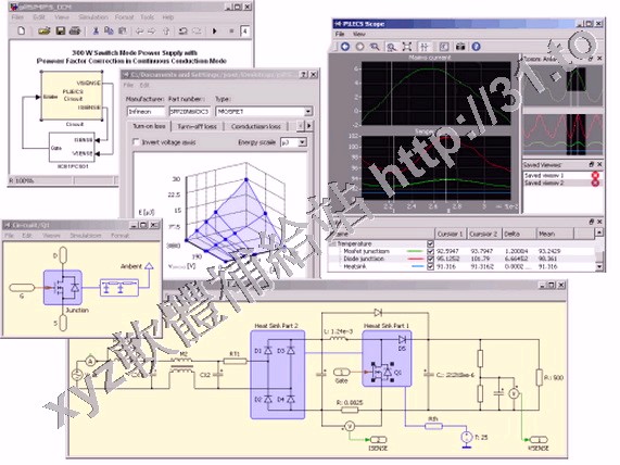 擬電力電子電路系統的工具。新版本的特色包括熱模擬,並可透過PLECS Viewer與無