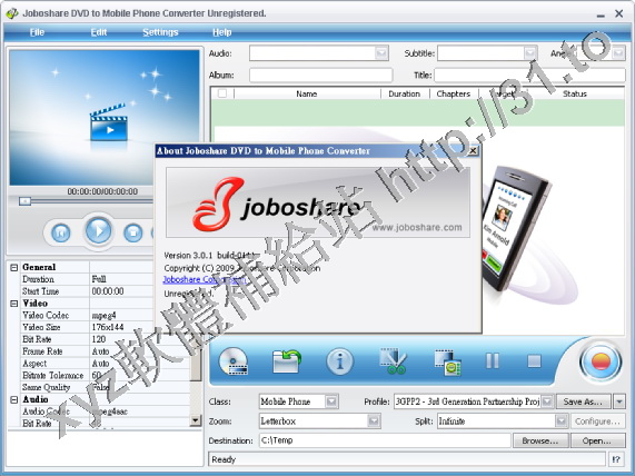 • Joboshare DVD to Mobile Phone Converter v3.1.1.0607 英文正式版(DVD視頻轉換工具軟體)